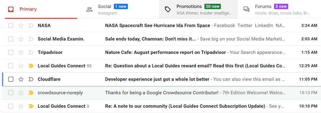 ប្រអប់សំបុត្រ (Inbox)៖ ប្រអប់ទទួលគឺជាកន្លែងដែលអ្នកអាចមើល និងគ្រប់គ្រងអុីម៉ែលដែលអ្នកទទួលបាន។ អុីម៉ែលត្រូវបានរាយជាមួយ ឈ្មោះអ្នកផ្ញើប្រធានបទនៃសារ និងកាលបរិច្ឆេទទទួល