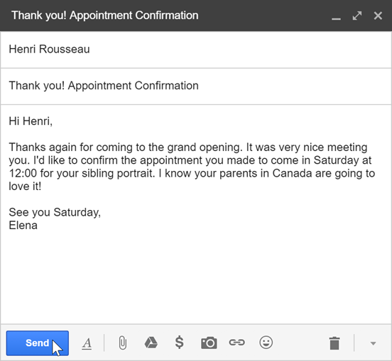 •      ផ្ទាំងតែង/សរសេរ (Message pane) អ្នកអាចចុចប៊ូតុង ឬពីប្រអប់សាររបស់អ្នកដើម្បី​ បើកផ្ទាំងដើម្បីបង្កើតសារអុីម៉ែលទាល់ខ្លួនរបស់អ្នក។ ពីទីនេះអ្នកនឹងត្រូវបញ្ចូលអាសយដ្ឋានអុីម៉ែលរបស់អ្នកទទួល និងប្រធានបទ។ អ្នកក៏មានជម្រើសក្នុងការផ្ទុកឡើងឯកសារ (រូបថតឯកសារ។ ល។ ) ជាឯកសារភ្ជាប់ និង បន្ថែមការធ្វើទ្រង់ទ្រាយទៅសារ។